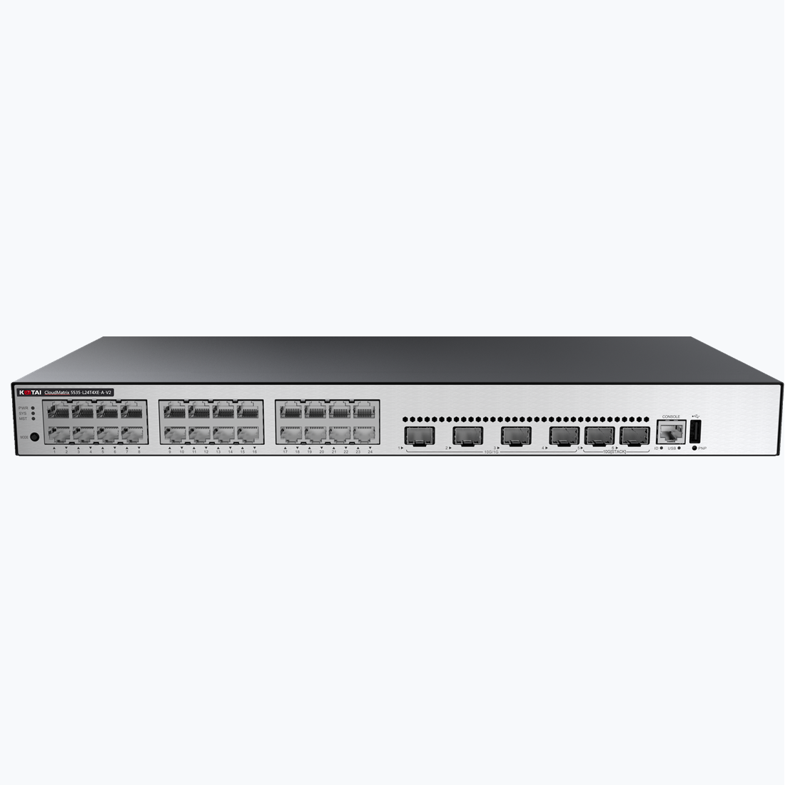 CM5535-L24T4XE-A-V2 | CM5535-L24T4XE-A-V2 交换机(24个10/100/1000BASE-T以太网端口,4个万兆SFP+端口,2 个 12GE 堆叠口, 交流供电) |